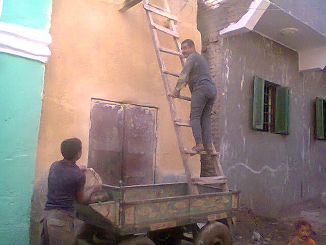'''كان النمط السائد في القرية هو بناء البيت بالطوب اللبن المصنوع من التراب او ما يسمى بالنيىء كان عرض الحائط كبير جدا تسير عليه بكل يسر وكان الاتفاع اقصاه ثلاثة ادوار حتى بدايات 1960م دخل البناء بالاسمنت فكان البناء غرف متناثرة لكبر مساحات الأرضي السكنيةوعدم التفكير بالمستقبل شهدت القرية في السنوات الأخيرة نهضة عمرانية متتالية وذلك بجهود ابنائها ورغبتهم في تطوير حياتهم المعيشية واعتمادهم على طرق البناء الحديث والتخلص من طرق البناء القديمة واستغلال المساحة ببناء طوابق متعدده مما كان له أبلغ الأثر في احتواء تنامي عدد السكان وقلت الأراضي السكنية